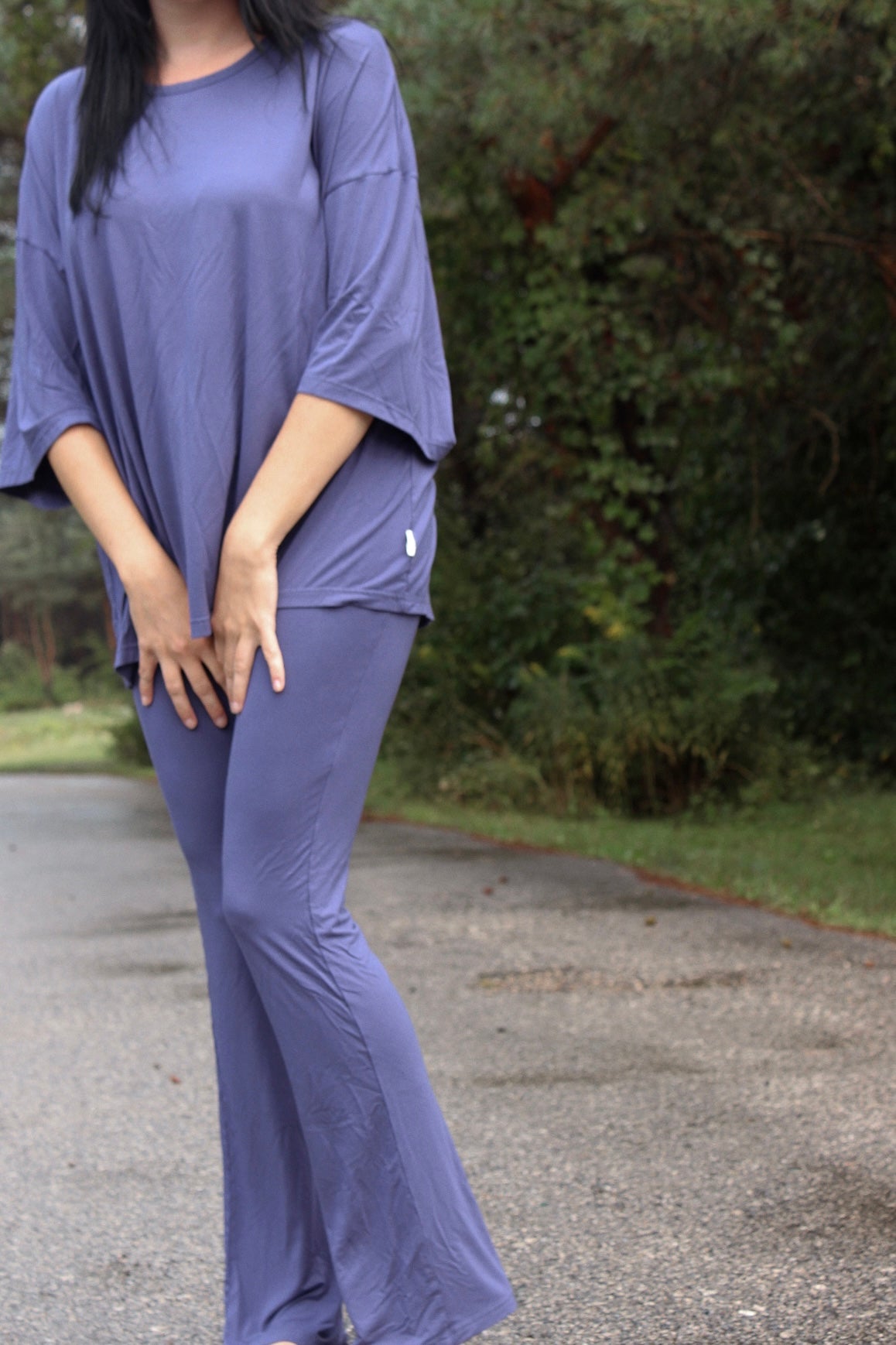 Meet your new go-to for cozy days and effortless style. This soft lilac lounge set features a relaxed, oversized top with wide sleeves paired with flowy, straight-leg pants that flatter while keeping you comfortable. Crafted from buttery-soft fabric that moves with you, it’s perfect for mornings on the porch, afternoons at home, or evenings unwinding in style. The muted purple hue adds a dreamy, calming touch—making this set just as beautiful as it is comfortable.